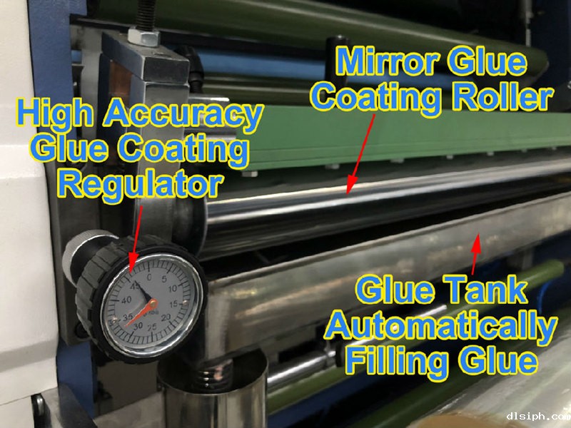 Adopt high accuracy glue coating regulator, can control a erasing knife to adjust coating thickness easily and accurately, save much glue consumption. Mirror coating roller ensure the glue is even. With automatic glue filling and cycling function.
