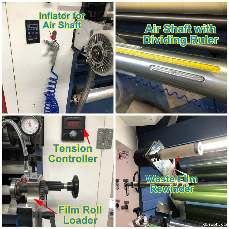 Air shaft with dividing ruler, can adjust the position of film roll accurately, easy to load film. The tension of film is adjusted accurately by the tension controller.