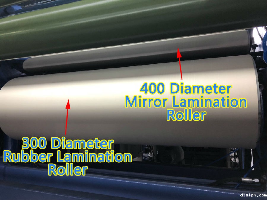 400mm diameter mirror laminating roller, also equipped with electromagnetic heating system, cooperate with 300mm big rubber roller to insure laminating performance.